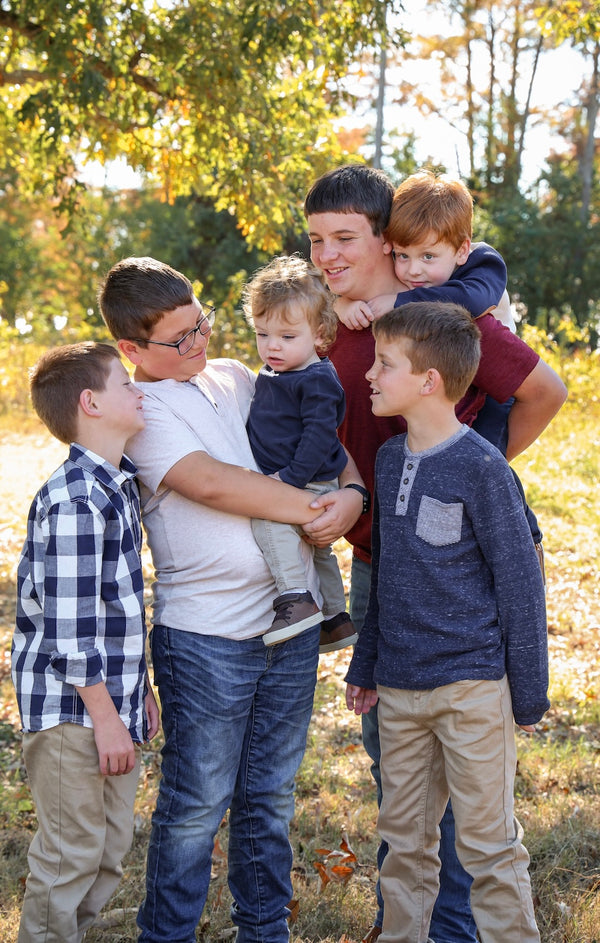 One day, the twins were playing hide-and-seek. Logan hid behind the laundry. Lawson, looking for him, shoved it aside, not realizing his brother was behind it.
